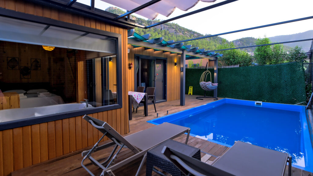 İnlice – Egem Tatil Evleri, Fethiye’nin sakin, doğayla iç içe bölgesi İnlice’de misafirlerini ağırlıyor.Tesisimiz, huzurlu ve konforlu bir tatil isteyenler için özenle hazırladık.Her bungalow, özel havuz, jakuzi ve geniş yaşam alanıyla misafirlerimize konfor sağlıyor. Altı farklı bungalow seçeneğiyle konuklarımıza hem mahremiyet hem de rahatlık sunuyoruz.Her evi modern mobilyalarla döşedik.Mutfaklarda tüm ihtiyaçlar için gerekli eşyalar yer…